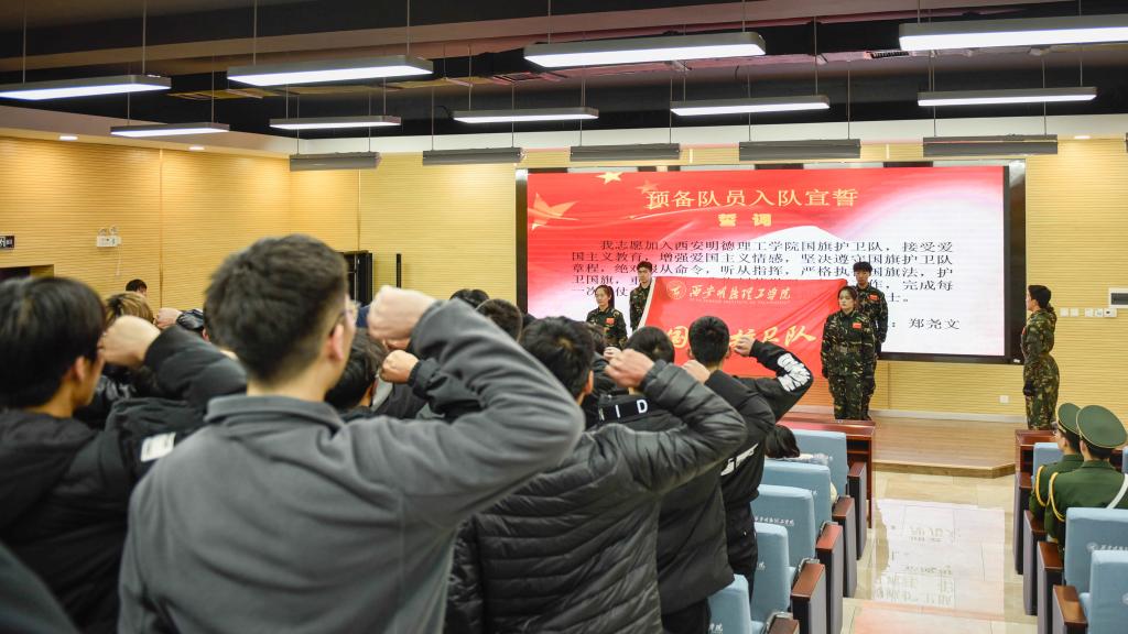 随后,离队队员上缴了肩章、领花,李传斌老师为他们颁发了荣誉证书,并为新任干部颁发了聘任书。新任干部代表李思雨作了表态发言,她表示,新一届国旗护卫队将继续发扬优良作风,担当护卫国旗之使命,传递好爱国、爱校、爱队之理念,努力发挥自身特点和优势,工作中不断开拓创新,书写国旗护卫队新篇章。期间,新入队的50余名预备队员面向队旗进行了入队宣誓。