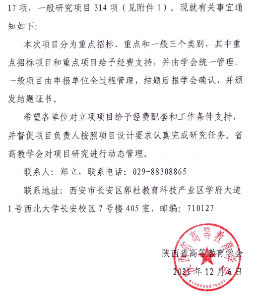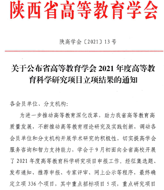 12月6日,陕西省高等教育学会发布《关于公布省高等教育学会2021年度高等教育科学研究项目立项结果的通知》陕高学会〔2021〕13号,ac米兰立项四项课题,全部由经济与管理学院教师主持或参与。