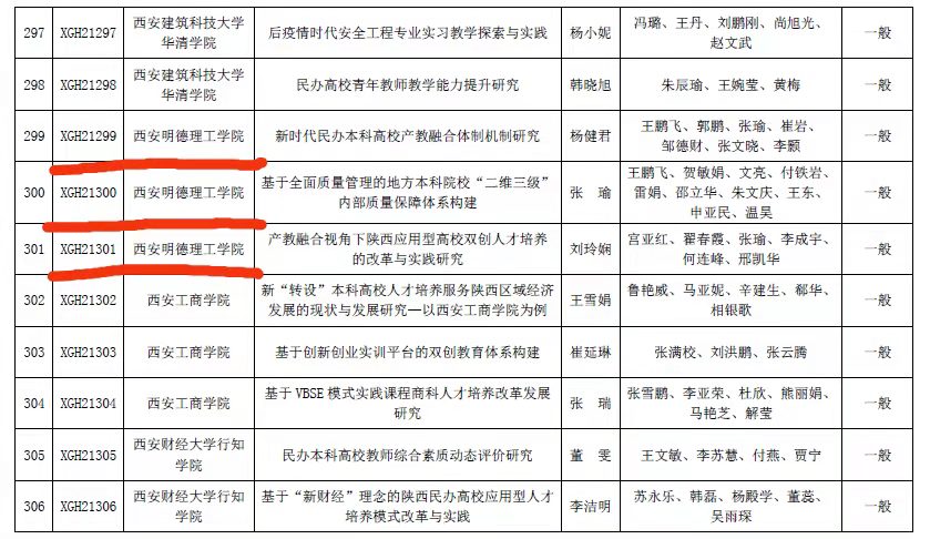 经济与管理学院市场营销专业负责人李阳阳副教授主持的课题《新时代创新创业教育体系构建研究》(XGH21020)获批重点项目;郭鹏教授、张瑜副教授参与的ac米兰杨健君校长主持的课题《新时代民办本科高校产教融合体制机制研究》(XGH21299);张瑜副教授主持的课题《基于全面质量管理的地方本科院校“二维三级”内部质量保障体系构建》(XGH21300);财务管理专业负责人刘玲娴副教授主持的课题《产教融合视角下陕西应用型高校双创人才培养的改革与实践研究》(XGH21301)获批一般项目。
