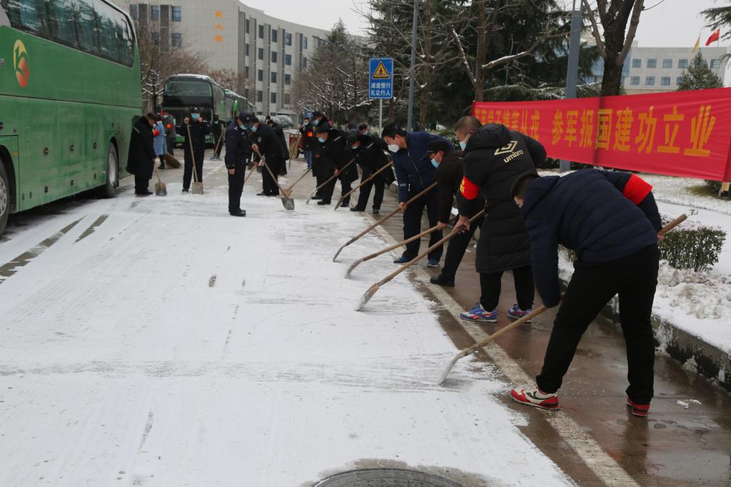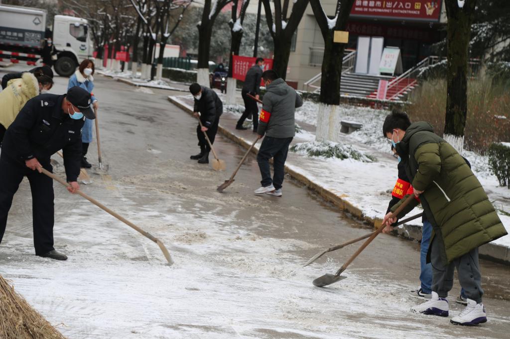 由于人员众多,校内除雪工具不足,大家轮番上阵,经过2个多小时的奋战,圆满完成积雪清除工作,为师生们开辟出了一条条温情的道路。