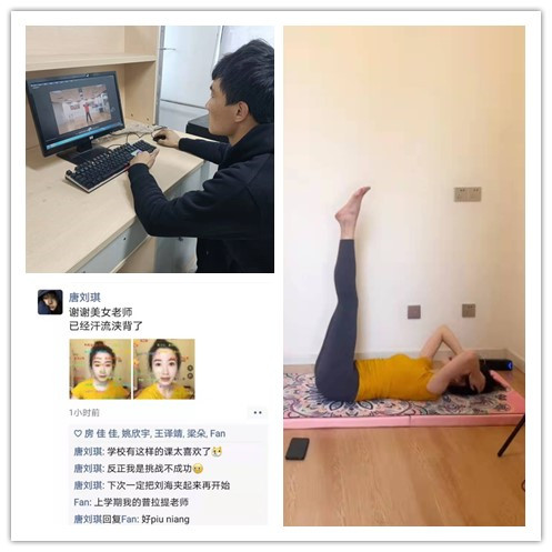 12月29日起,通识教育学院7门线上体育运动课程陆续开课,学生累计参与人数达8600余人,参与度高,反馈效果好。严麦雄开设的《减脂塑形练习》、董婕开设的《芭蕾形体》、冯欣开设的《徒手身体素质及体型练习》、孙鹏开设的《健身气功八段锦》、祝新蕊开设的《减脂塑形训练》等课程,根据学生在宿舍线上学习的情况和授课内容的特点,通过理论讲解与直播示范相结合的教学方式,注重选择与居宿锻炼紧密联系,涵盖运动技能、身体素质、健康知识及习惯养成等方面内容,让同学们在宿舍的小空间内就能选择合适的运动方式进行有效锻炼,丰富居宿生活,增强学生锻炼效果。
