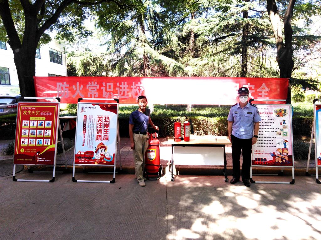 活动由后勤管理处消防专干王建社老师负责,特邀滦镇派出所的驻校民警贾维警官来现场指导。通过现场讲解、咨询、展示常用消防器材、发放宣传手册及彩页、摆放宣传展板等方式,和师生们面对面进行安全知识宣传。