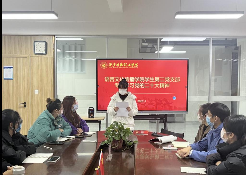 11月24日,语言文化传播学院学生第二党支部在明志楼406会议室召开党员大会,专题学习党的二十大精神。学生党支部全体同志参加学习。会议由党支部书记侯澄主持。