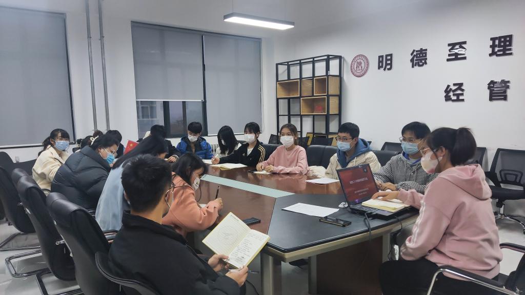 为深入学习宣传贯彻党的二十大精神,11月25日下午经济与管理学院学生第四党支部在明志楼北507召开专题学习会,会议采取线上线下相结合的方式开展。支部全体党员参加了学习,支部书记刘文静主持了会议。