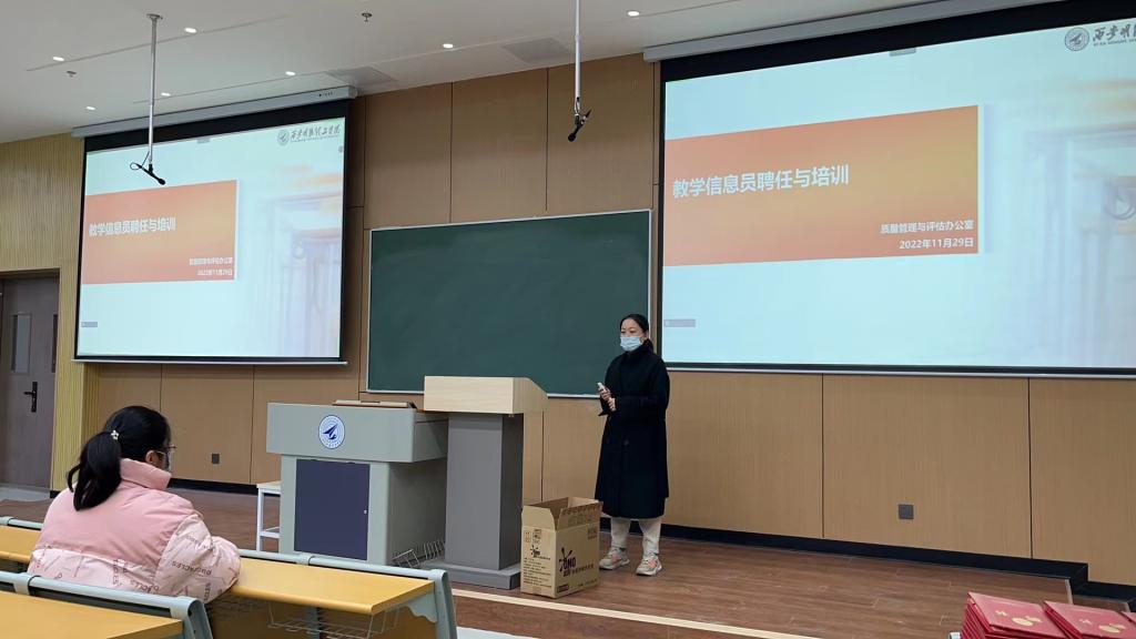 11月29日中午,质量管理与评估办公室在7号教学楼101召开教学信息员聘任及首次培训会议,会议采取线上线下相结合的方式开展。质评办副主任张瑜、校级教学督导王东和全体在校教学信息员参加,会议由温昊老师主持。