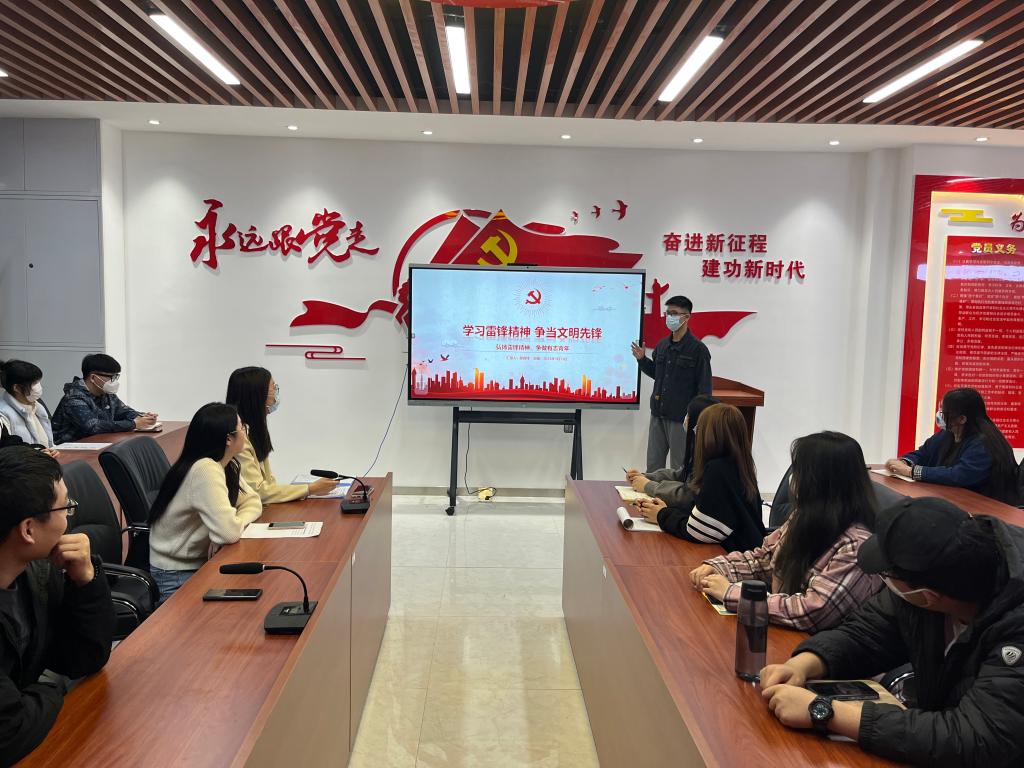 学生党员蔡良烽结合自身参加志愿服务活动的经历,宣讲了雷锋精神的时代内涵。引导广大同学传承雷锋精神,让学雷锋融入日常、化作经常,让雷锋精神在新时代绽放更加璀璨的光芒。