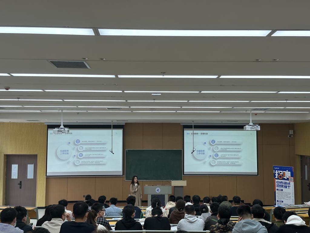 宣讲会上,西安安泰测试设备有限公司招聘负责人郑静悦从企业概况,发展历程,主营业务,企业文化,招聘需求、薪酬待遇和晋升发展等方面详细介绍了企业概况,并就学生重点关注的岗位要求,晋升发展途径及薪酬福利等问题开展现场交流。