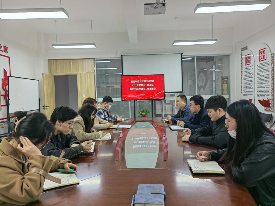 为全面总结2022届毕业生就业工作情况,扎实推动2023届毕业生就业工作稳步开展,3月16日下午,智能制造与控制技术学院在明志楼北304会议室召开2022年度就业工作总结暨2023年度就业工作推进会。学院党委书记陈雪彬、党委副书记曾凯、办公室主任赵婷、2022、2023、2024届毕业班辅导员参加会议。会议由党委副书记曾凯主持。