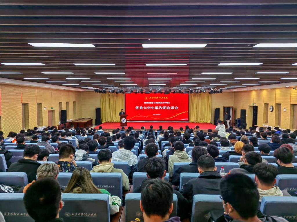 讲述青春故事,传递青春能量,携手共话成长。为促进学院学风建设,有力宣传和充分发挥榜样的示范引领作用,引导学生学有方向、学有所成,结合学校优秀大学生报告团巡讲工作部署,3月17日晚,智能制造与控制技术学院在建德楼203报告厅举办优秀大学生报告团宣讲会。学院党委书记陈雪彬、校党委学生工作部任旗、学院全体辅导员及2022级全体学生参加报告会。报告会由党委副书记曾凯主持。
