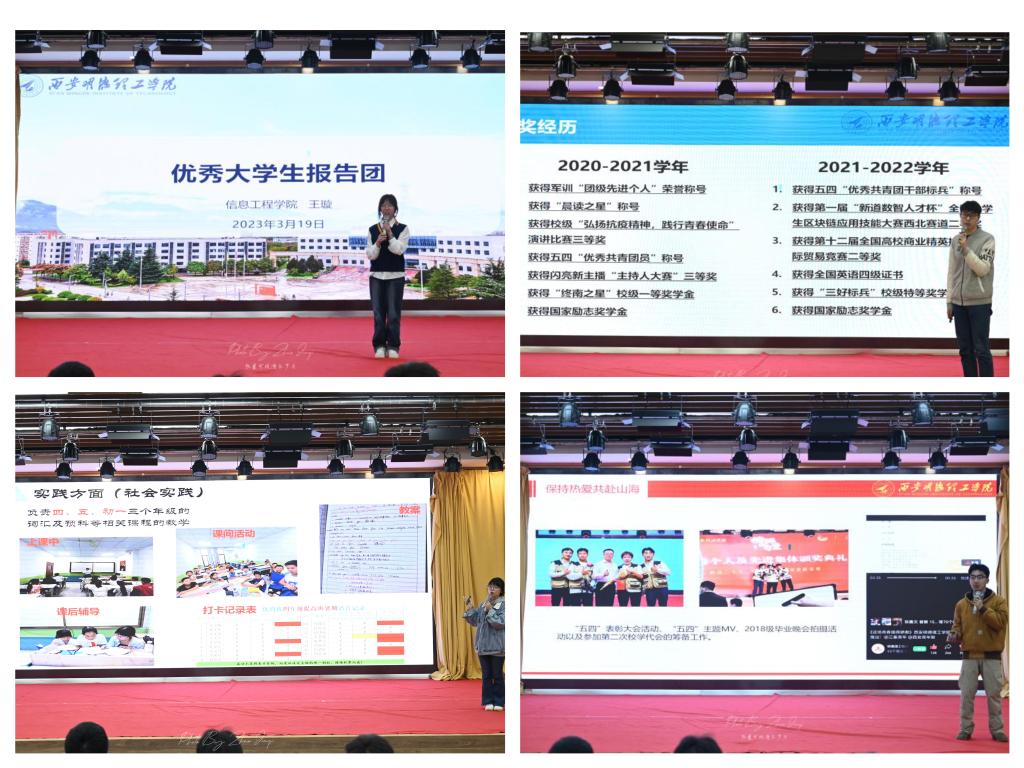 “优秀大学生报告团巡讲活动”是ac米兰树立大学生榜样力量的重要平台,充分发挥了大学生“自我管理、自我服务、自我教育、自我监督”的功能。同时,对推进学校优良学风建设,营造良好校园文化氛围有积极作用。