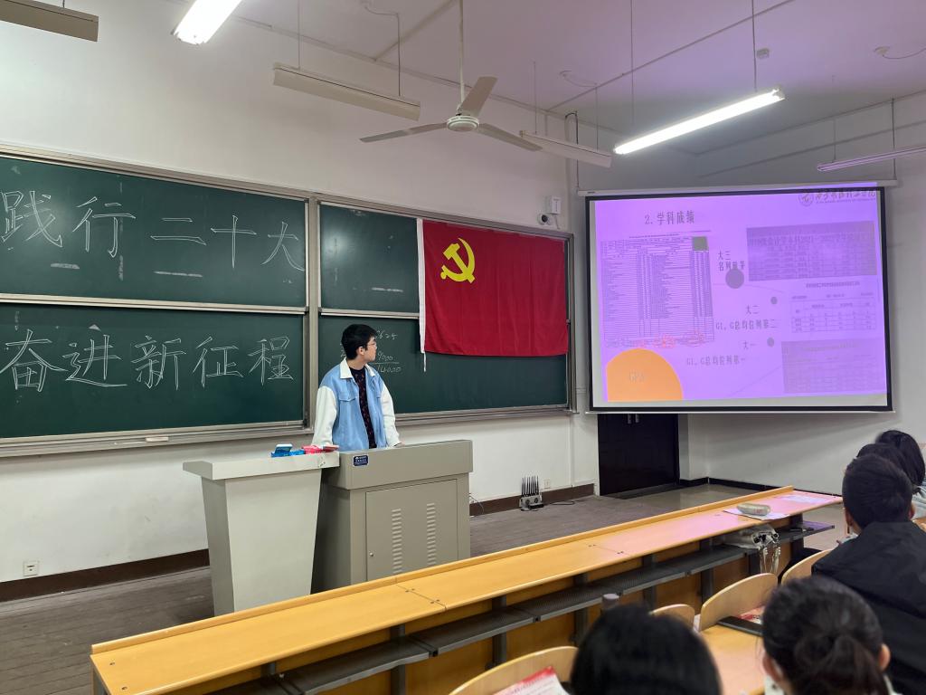为引导广大青年学生学习宣传贯彻党的二十大精神,传达学习习近平总书记关于国防和军队建设的重要论述。经济与管理学院学生第一党支部于3月23日晚在立德楼101举办“青春践行二十大,砥砺奋进新征程”信仰公开课第二讲。经济与管理学院辅导员兼征兵专干吕盼担任主讲老师,2021级退伍学生高曹骜和2023届毕业生华中天两名学生围绕课程主题做了分享。学生第一党支部党员以及学院入党积极分子、毕业生代表参加了学习。