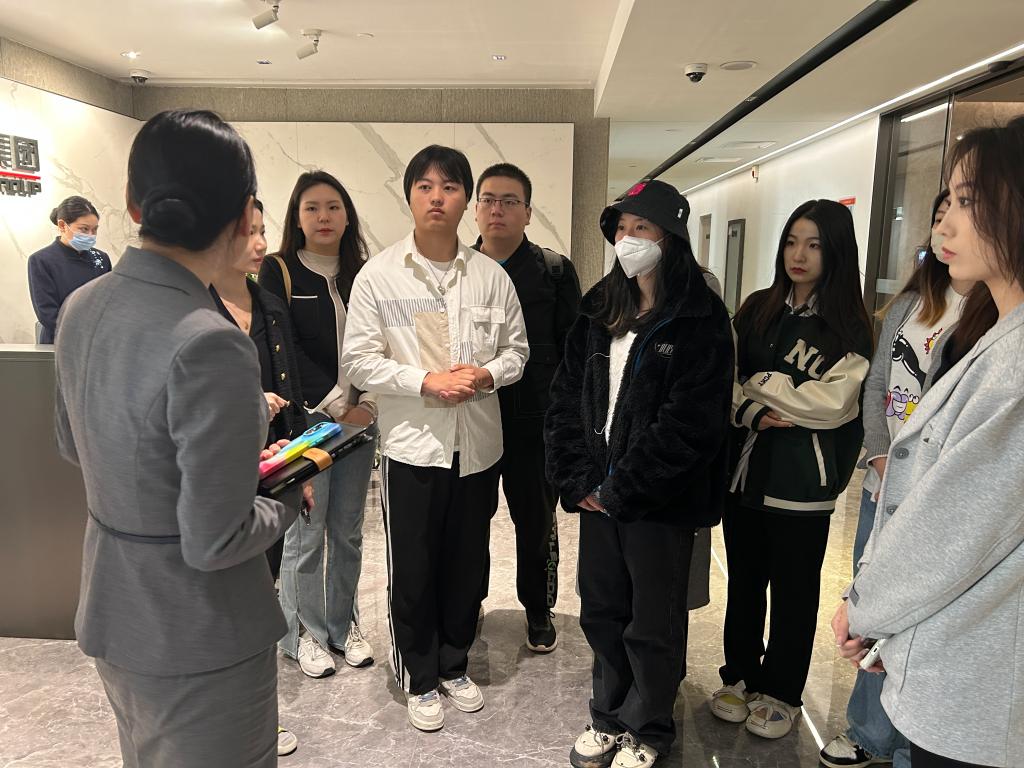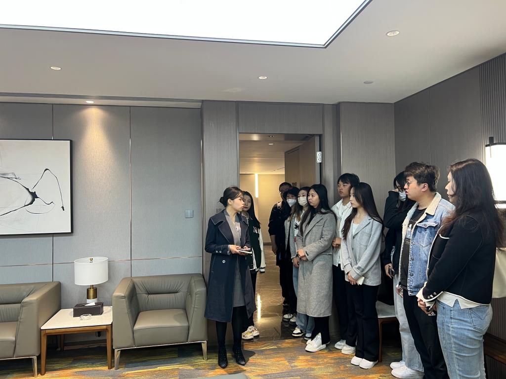 高科云天项目主管高峰向同学们介绍了高科·云天项目基本情况,以及咨询台、水吧、管家等相关工作内容,随后带领同学们参观了高科·云天项目的样板间,从视觉上让同学们切身感受企业文化和企业宗旨。项目主管赵慧娟带领大家参观了高科智慧园写字楼,董小斐介绍了整个写字楼的楼层和办公场所分布。