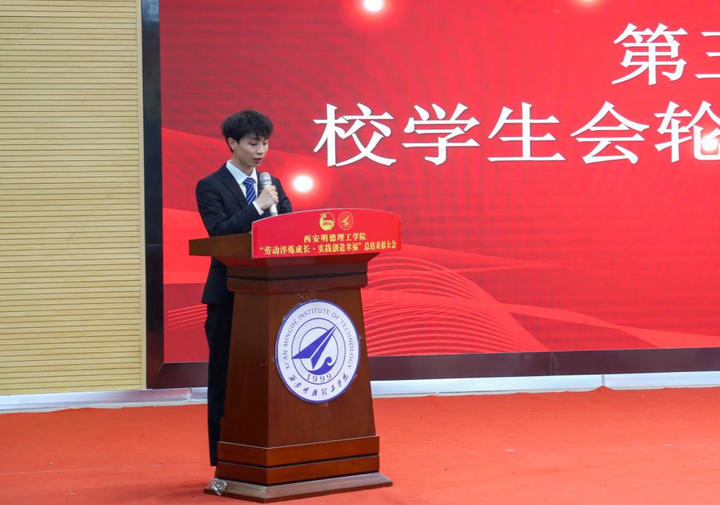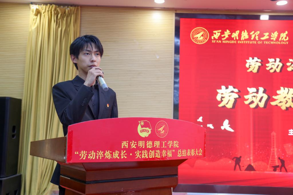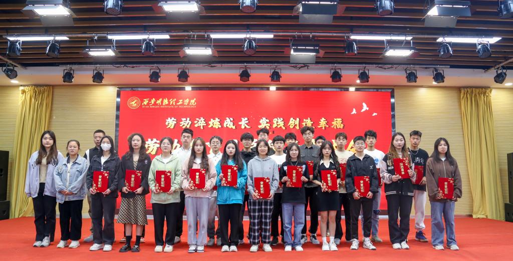 活动开始先播放了2022年11月至2023年3月期间开展宿舍文化节、宿舍萌宠设计大赛、最美劳动者摄影大赛、宿舍文明建设VLOG大赛等系列活动开展情况视频。校学生会轮值主席焦磊发言,他讲到“习近平总书记倡导我们要深刻理解劳动的价值、弘扬劳动精神,青年学生应在实践中不断成长”。获奖学生代表李官琛同学发言,他说:“青年大学生,应当积极参加劳动,用青春奋斗谱写人生华章。”现场嘉宾为劳动教育月优秀集体及先进个人进行了颁奖。