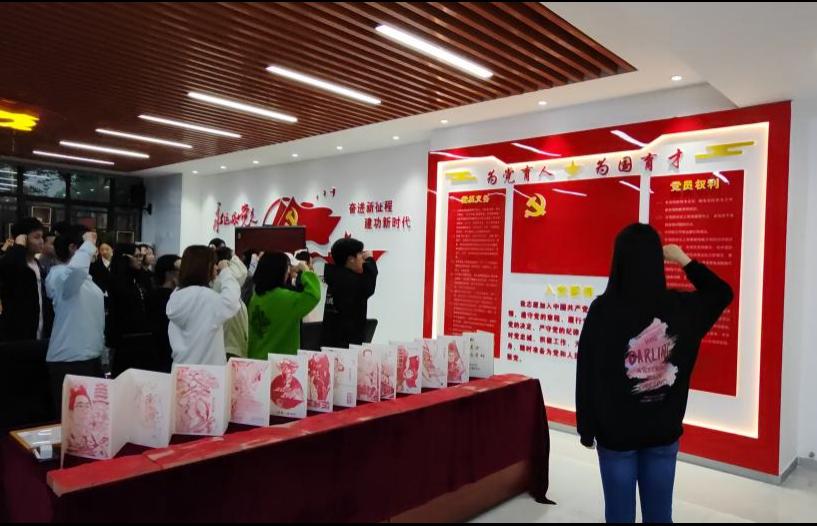 “我志愿加入中国共产党,拥护党的纲领,遵守党的章程……”,在支部书记梁爽、侯澄带领下,全体与会党员佩戴党员党徽,面向鲜红的党旗,高举右拳庄严宣誓,以铮铮誓言唤醒入党初心。全体毕业生党员表示必将铭记誓言,在走出校园走向社会后,继续践行党员承诺,永葆党员先进性和纯洁性。