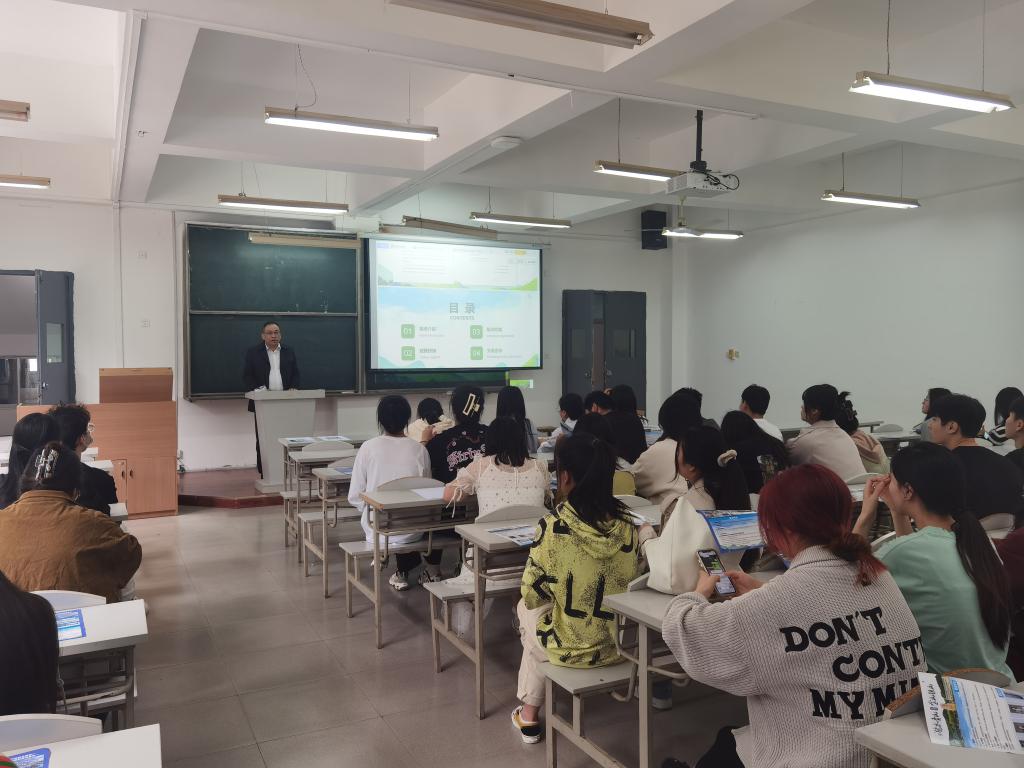 宣讲会上,浙江悦升教育科技有限公司西北地区负责人阮海涛首先向同学们介绍了浙江电商行业的发展现状,鼓励大学生积极从事新媒体行业。接着,他从提前定岗、IP孵化、达人团队、技能提升及创业就业优惠政策等方面介绍了该企业在浙江省湖州市安吉县的实践基地产教融合项目。阮经理结合项目往期学员的优秀案例,着重介绍了2024年招聘基本情况、发展战略和前景、正式岗位与实习岗位需求等一系列学生关心的问题。宣讲会现场气氛活跃,与会学生针对本次招聘宣讲积极提问、展开讨论,招聘工作人员给予耐心解答。部分学生表达了应聘的意愿,并表示会后将通过网络形式投递简历。