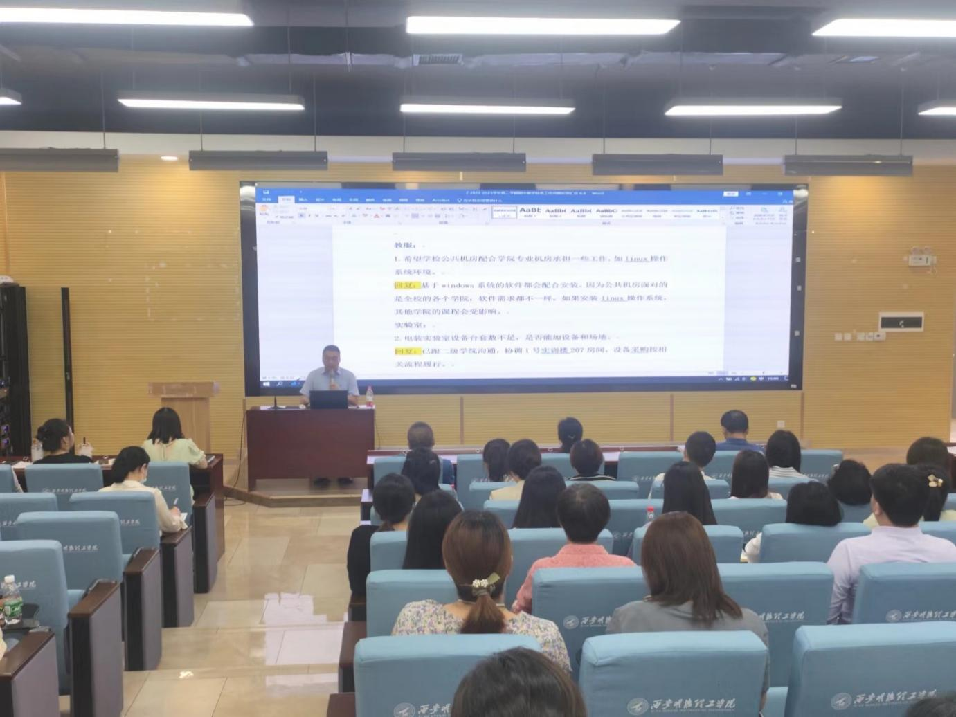 会议伊始,教务处处长朱延波对期中教学检查工作情况进行了总结,并对会议的内容和目的作了说明。教务处及质量管理与评估办公室分别对教学计划执行情况、实践教学实施情况、试卷归档情况、毕业论文、实验与实习情况、听课制度落实情况、教学资料以及教风学风等方面发现的问题进行了反馈,并提出相应的改进建议。