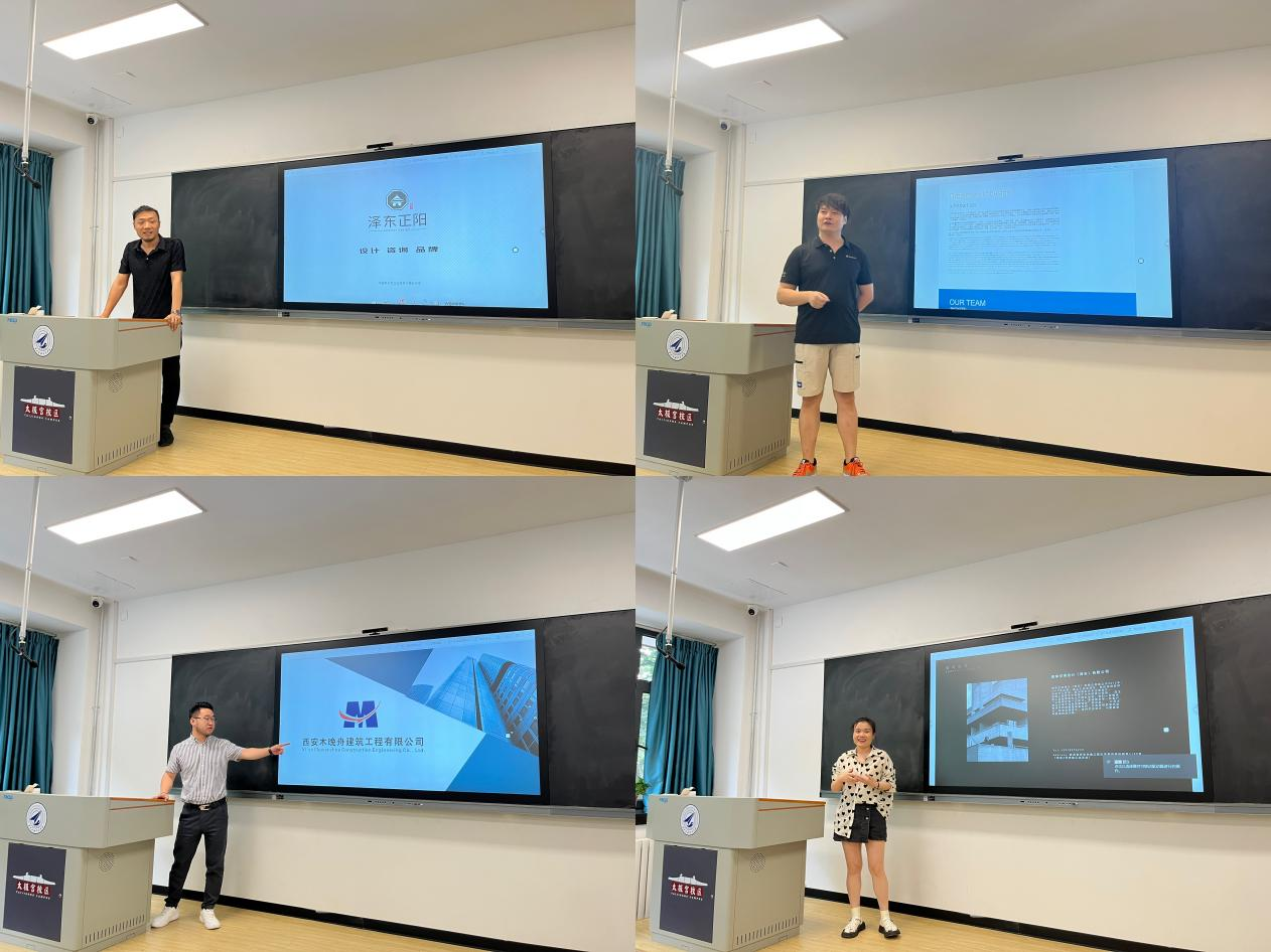 双选会特邀请了陕西泽东正阳建筑设计有限公司、陕西筑梦天下建筑有限公司、西安木晚舟建筑工程有限公司、郭莘空间设计有限公司4家优秀校友企业参会。会议由艺术与设计学院教学副院长、工业设计专业负责人冯强老师主持,工业设计专业教师和2020级工业设计专业室内与家具设计方向35名学生参加了会议。