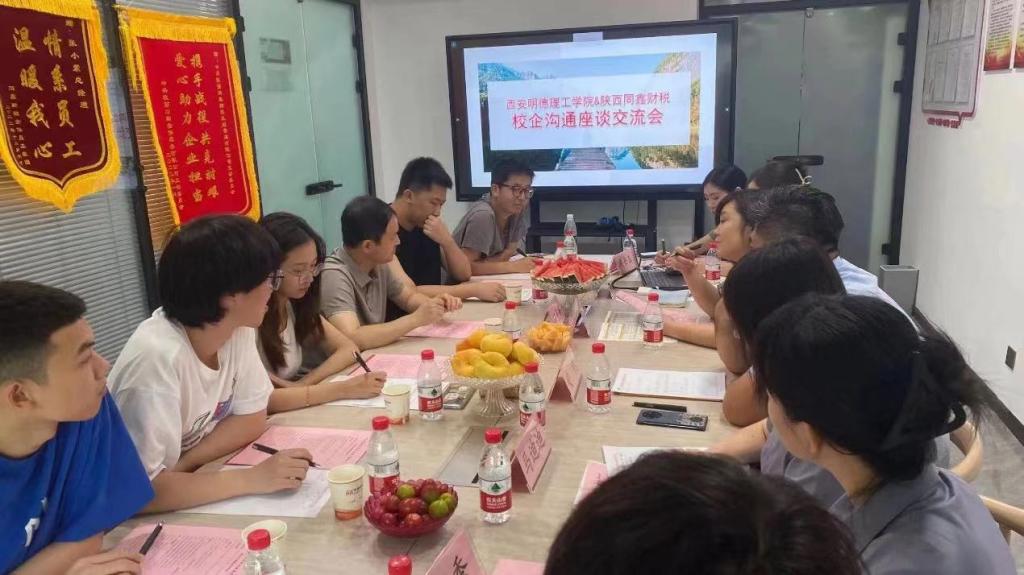 师生一行在陕西同鑫财税策划管理有限公司参访期间,行政人事部主管梁丹玉带领师生们参观了企业文化墙,财税会计部、高端部、商务部和品宣部办公环境。座谈环节,董事长安钊对ac米兰官方网站师生的参访表示热烈欢迎,与会人员一起观看了企业宣传介绍视频,总经理张小蒙从发展历程、组织机构、文化理念、党建工作和运营情况等方面向师生们介绍了企业概况。在企业实习的学院2024届会计学专业毕业生欧毅,分享了自身在该单位实习的感受,对企业方给予工作中的指导表示感谢,鼓励学院2024届毕业生珍惜实习机遇,在实践中提升专业技能和综合素质。校企双方就深化校企合作、拓宽就业渠道、加强就业指导、提高毕业生就业竞争力等方面主题进行了深入交流,并达成合作意向。
