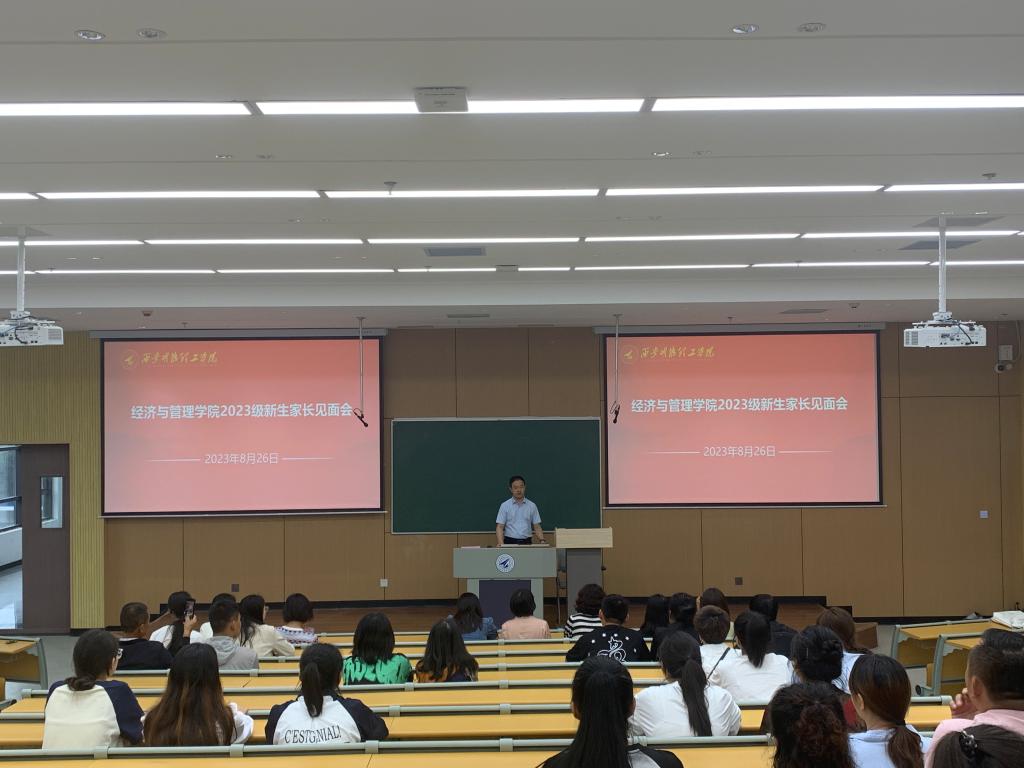 为了让新生家长全面了解二级学院学科专业建设、教育教学质量、人才培养体系和育人成效,促进家校联系,加强家校协同,形成育人合力。经济与管理学院于8月26日下午在7号教学楼201教室召开2023级新生家长见面会。学院班子成员、办公室主任、各专业负责人、新生辅导员、2023级新生家长参加了会议,见面会由经济与管理学院党委书记兼行政副院长何文举主持。