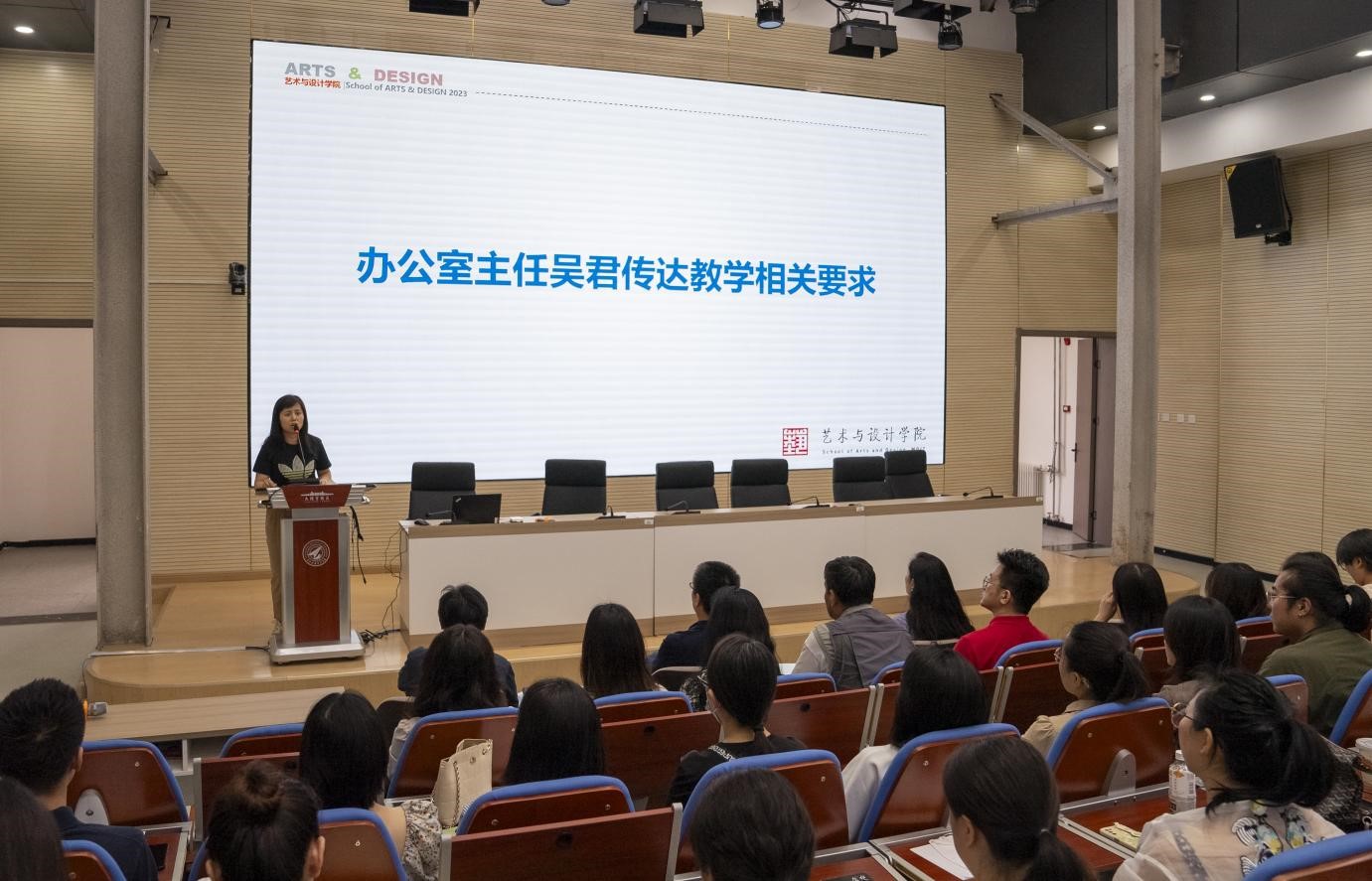 2023年9月1日下午,艺术与设计学院在北校区尚德报告厅召开2023-2024学年秋季学期全院教职工大会,部署新学期各项工作。艺术与设计学院全体教职工参加会议,会议由副院长冯强主持。