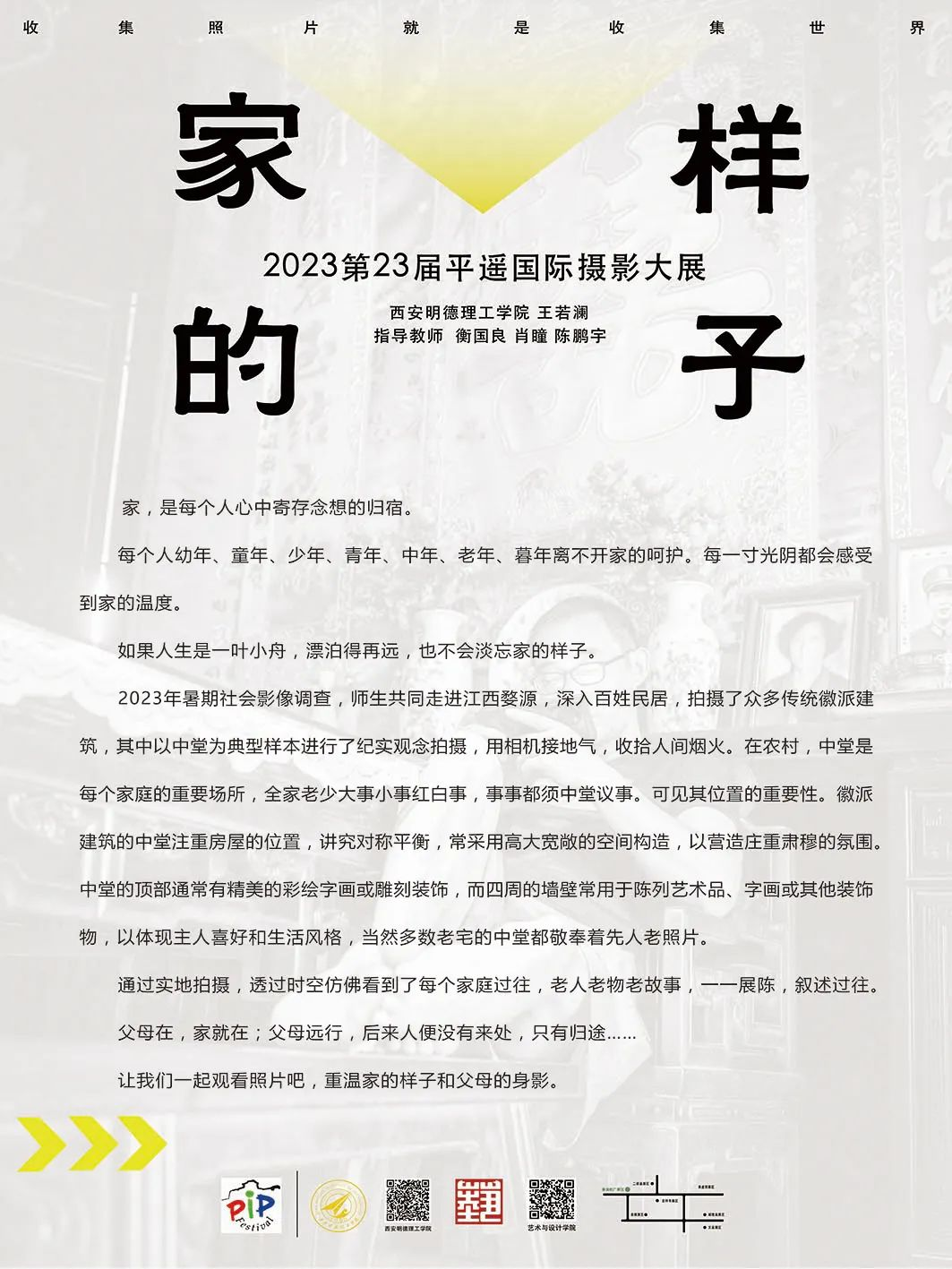 ac米兰官方网站学生摄影作品《本来》《家的样子》参展2023年平遥国际摄影大展,此次参展作品由ac米兰官方网站艺术与设计学院院长苟秉宸教授担任总策展人,数字媒体艺术专业衡国良老师担任执行策展。此次参展是ac米兰连续第三年参加平遥国际摄影大展院校展,不仅展现出平遥国际摄影大展组委会对ac米兰学生作品的认可,更加凸显ac米兰对专业培养的重视和投入。