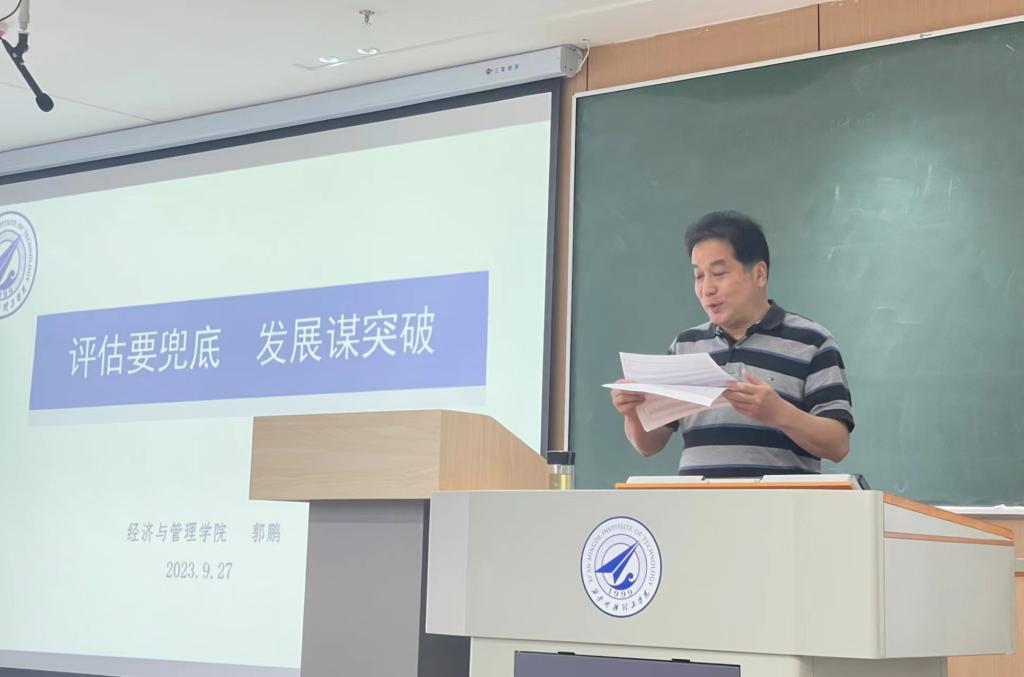 会上,郭鹏院长对新进教职工进行了介绍,对学院领导班子分工做了说明,重点宣讲了本学期学院重点工作、合格评估、团队建设及标志性成果培育等方面工作的思路和实现路径,并对聘期绩效考核和职称评审工作做了解读。他号召全体教职工以本科教学工作合格评估为契机,不断提升教学水平和教学管理能力;以团队建设及标志性成果培育为抓手,为学院发展建设做出突出贡献。郭院长代表学院班子成员向与会教职工及其家庭送上中秋、国庆双节的慰问和祝福。