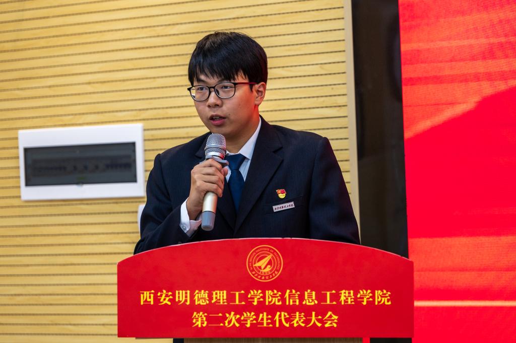 开幕式上,校学生会主席团成员李镇秦代表校学生会致词。他号召全院同学以本次学生代表大会为契机,把握机遇,迎接挑战,为更好地服务全体同学成才成长,为把ac米兰学生会建设成全国一流学生会,为实现信息工程学院发展的既定目标和把ac米兰建设成特色鲜明、国内一流,具有一定国际知名度的应用型民办大学而努力奋斗。