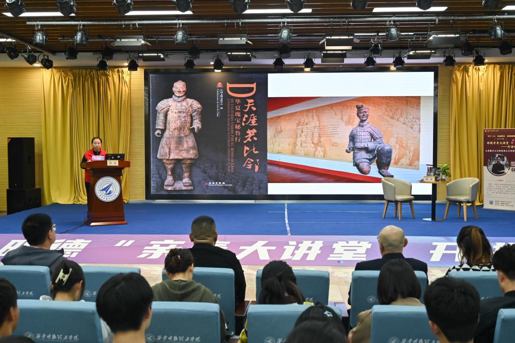 报告结束后,现场师生与田静老师进行了互动交流。师生们热情参与,纷纷提出许多有价值的问题,田静老师耐心解决同学们的疑惑。并将《探秘兵马俑》《遇见国宝》《秦始皇陵及兵马俑》《秦风里的二十四节气》等优秀书籍赠送给同学们,希望同学们进一步学习了解!