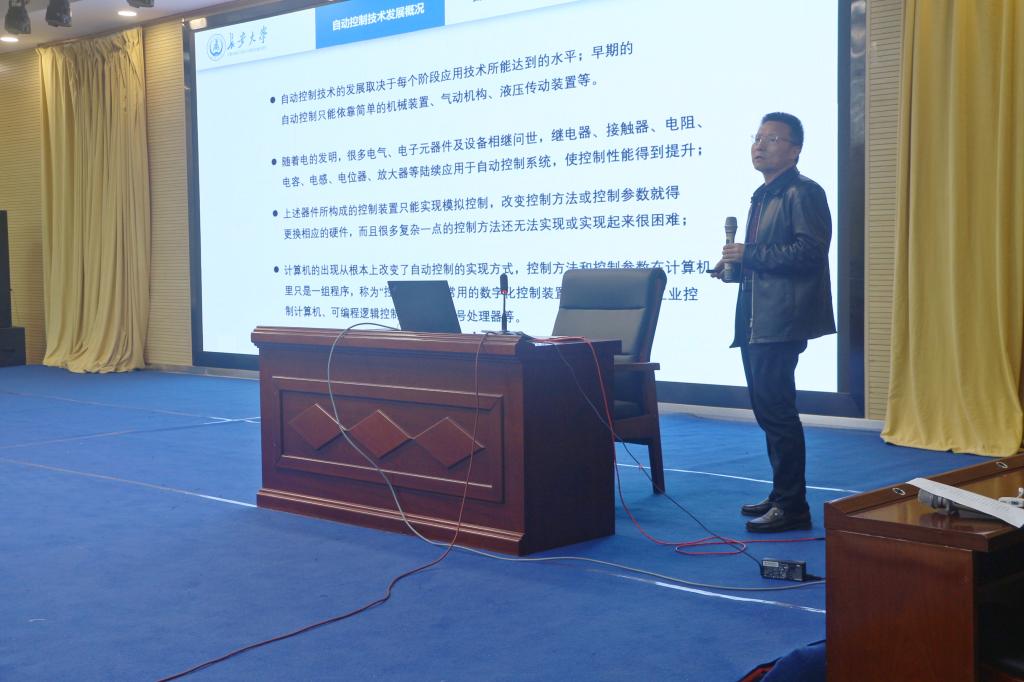 在分享自动控制技术发展时,巨教授指出自动控制技术的发展取决于每个阶段应用技术所能达到的水平。如从早期只能依靠简单的机械装置、气动机构等逐渐发展到电气、电子元器件设备,直至计算机的出现,从根本上改变了自动控制的实现方式。并着重介绍了单片机、工业控制计算机、可编程逻辑控制器、数字信号处理器等常用的数字化控制装置。其次,他分别从经典控制理论、现代控制理论、大系统控制理论和智能控制理论三个阶段对自动控制理论的发展进行了阐释。最后,通过对最新版自动控制学科专业目录的简要介绍,鼓励同学们潜心研究,学业深造,不断提高。