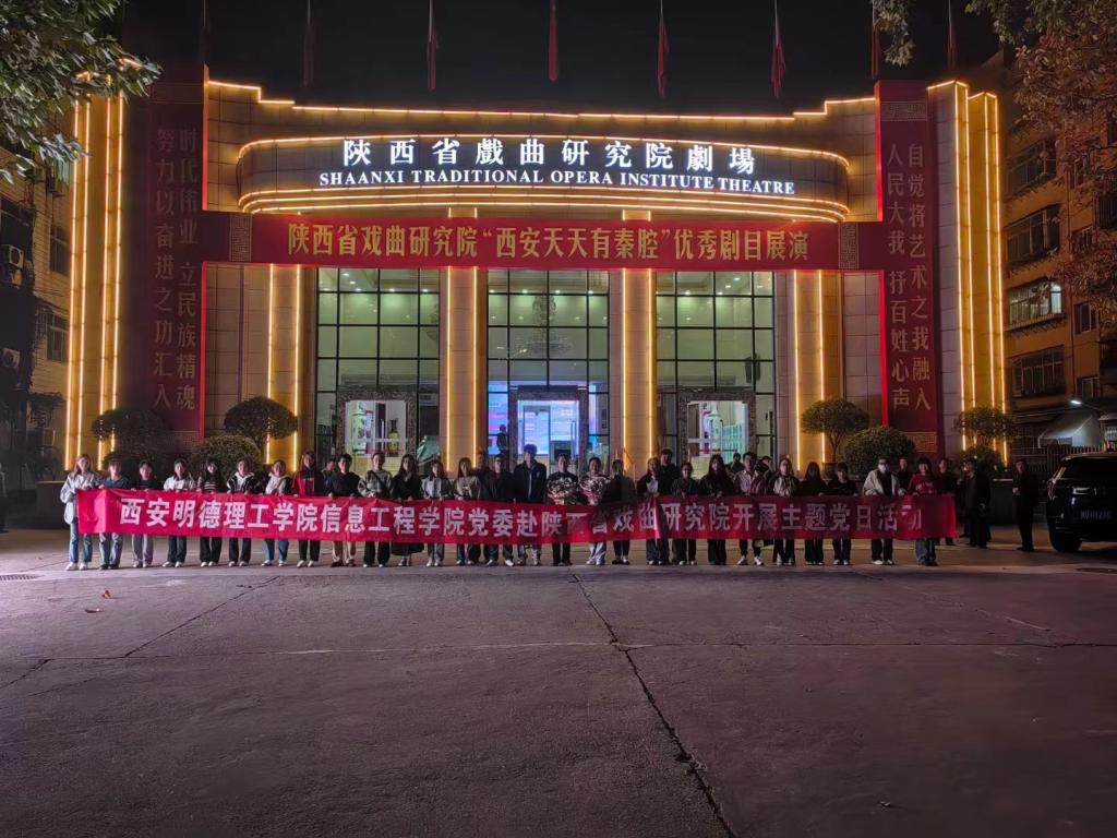 11月1日,信息工程学院学生党支部30余名党员代表在第四党支部书记张喜慧的带领下前往陕西省戏曲研究院开展主题党日活动,观演《骄杨之恋》,感受杨开慧烈士的崇高品格。陕西省戏曲研究院秦腔二团李小锋团长和茹曼老师热情欢迎老师同学们的到来。