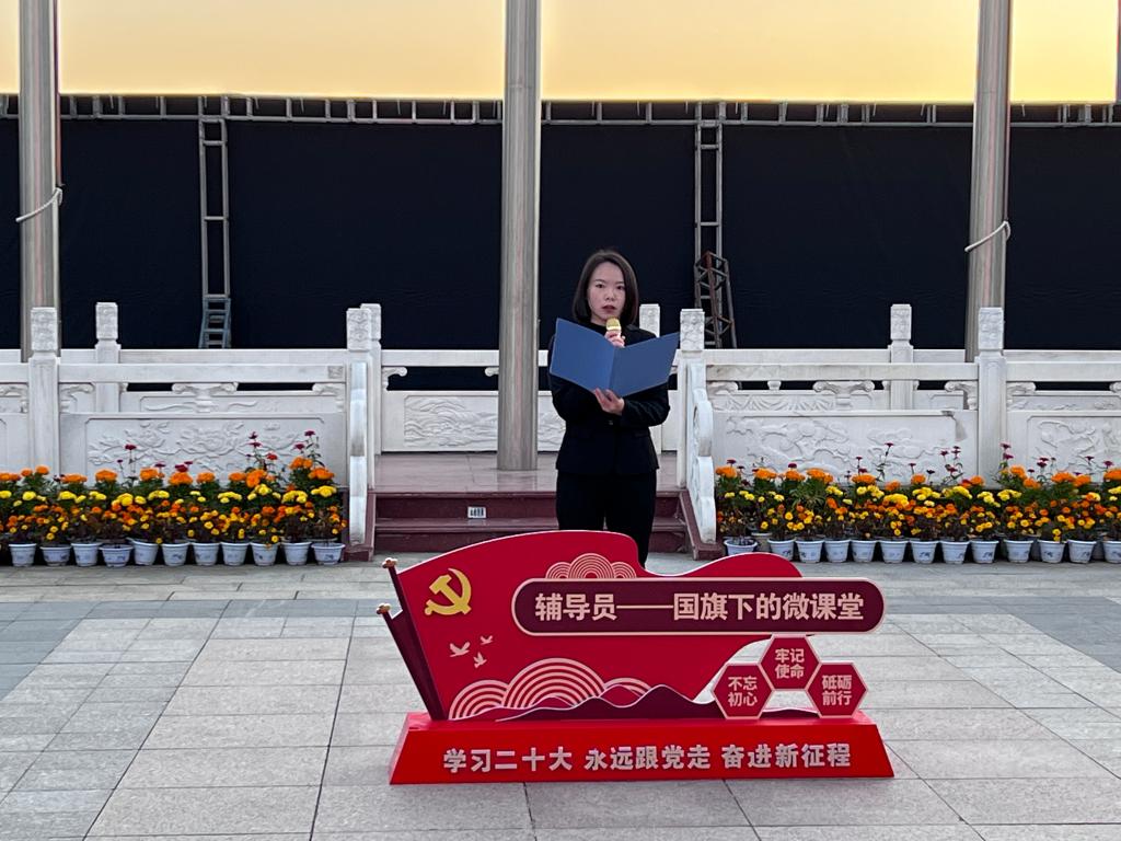 11月6日早晨,“辅导员说成长”——第二十期辅导员讲微课“展青春风采,树优良学风”国旗下的微课堂爱国主义教育系列活动在学校中心广场举行,党委学生工作部老师、艺术与设计学院师生代表参加活动。
