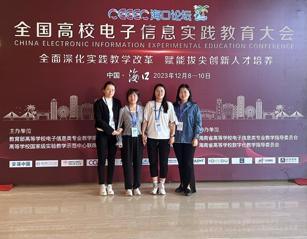 2023年12月8日至10日,由教育部高等学校电子信息类专业教学指导委员会、高等学校国家级实验教学示范中心联席会电子学科组主办的全国高校电子信息实践教育大会在海口召开,参会代表近400位,来自全国200多所高校及30多家企业,ac米兰信息工程学院刘燕、李婧、仝丹、王菲4位教师进行了现场交流学习。