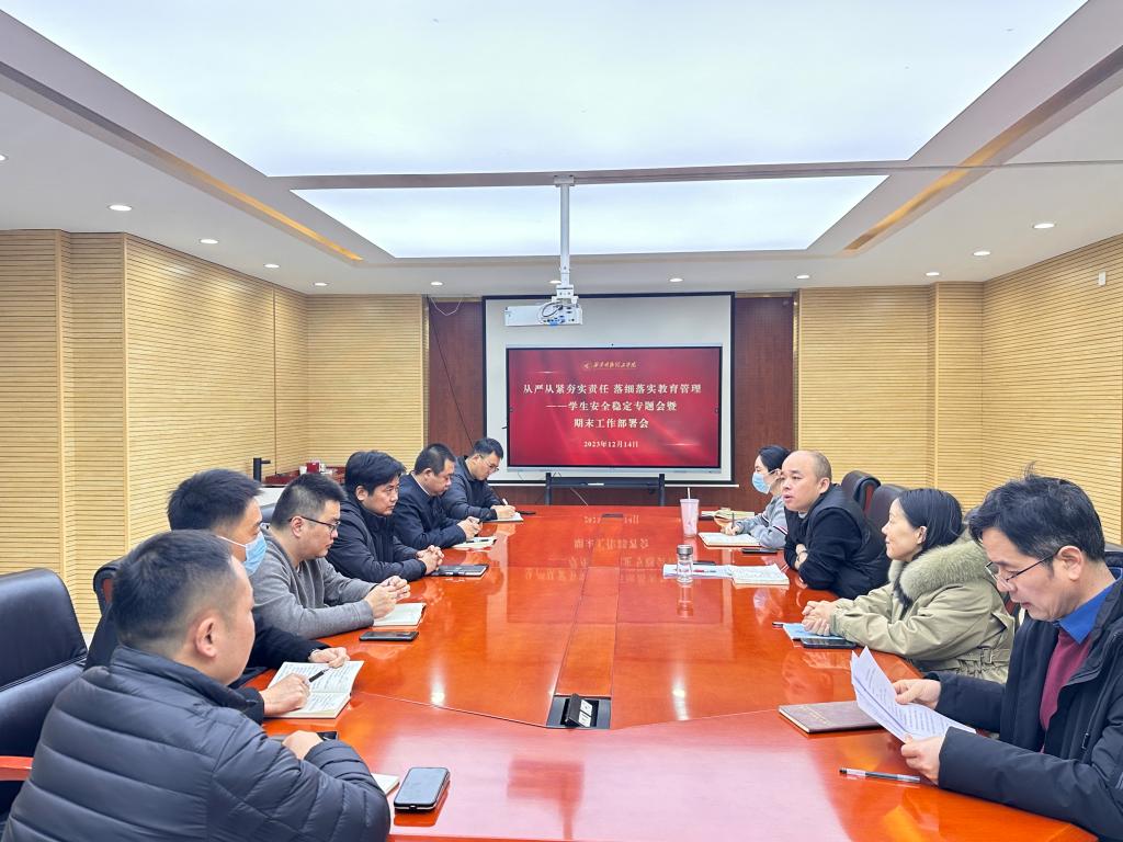 为确保学校期末各项工作顺利推进,强化学校安全管理。12月14日上午,学校在明志楼南207会议室召开学生安全稳定专题会暨期末工作部署会。党委学生工作部、各学院有关人员参加会议。