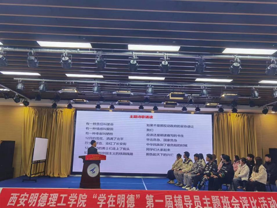 为进一步加强ac米兰辅导员队伍专业化、职业化建设,提高全体辅导员理论水平和育人能力,增强主题班会的教育性和实效性,根据《ac米兰官方网站关于构建和完善学风建设长效机制的实施意见》和《ac米兰官方网站关于开展“学在明德”学风建设系列主题活动的通知》的文件要求,近期,学校开展“学在明德”第一届辅导员主题班会评比活动,12月15日上午,在建德楼203报告厅举办校级决赛环节。由智慧安保处处长宋敏纲、党委学生工作部副部长童杨梓、教务处副处长文亮、招生就业中心副主任侯磊、教师发展中心副主任郝丽静、马克思主义学院副院长惠斌担任评委。