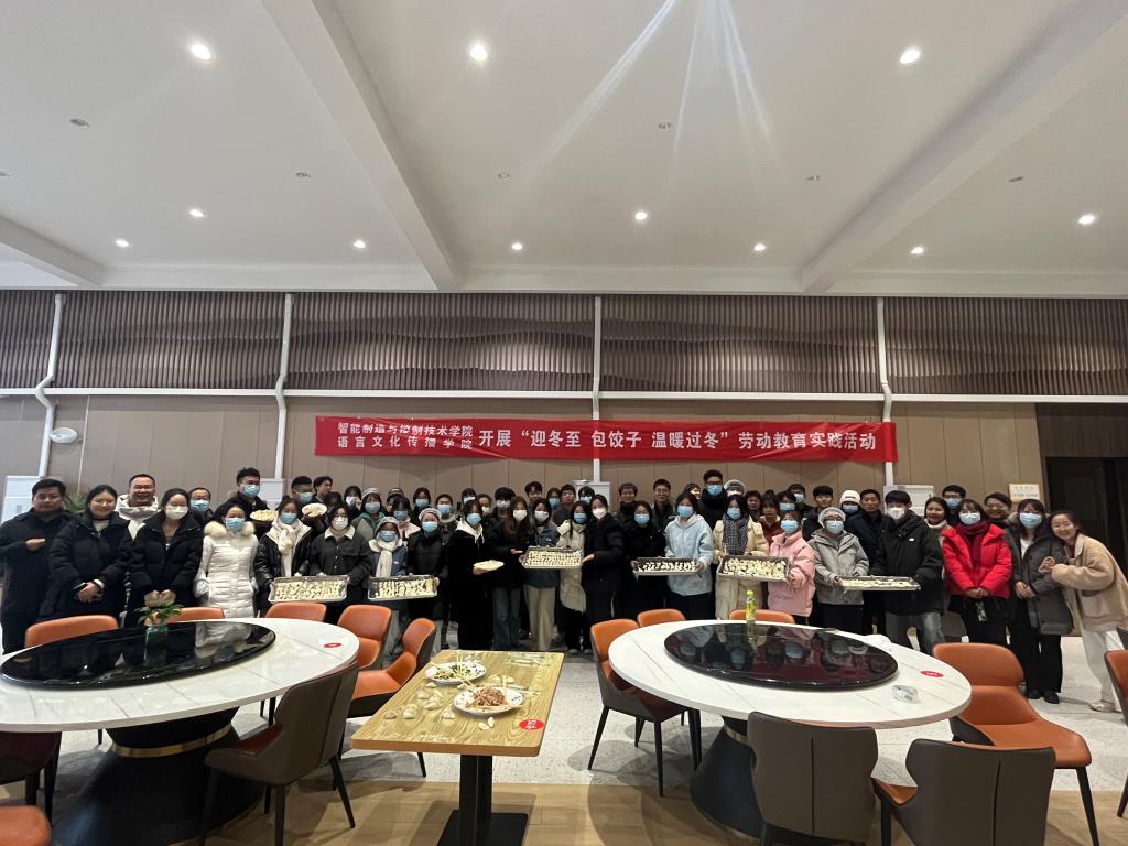 为深入贯彻落实习近平总书记关于劳动教育的重要论述,充分发挥劳动教育的综合育人作用,努力培养具有马克思主义劳动观的时代新人,加强同学们对中华优秀传统文化的认同感,切实培养学生的劳动意识,促进学生德、智、体、美、劳全面发展。智能制造与控制技术学院联合马克思主义学院、语言文化传播学院于2023年12月20日下午在沣河苑餐厅举办“迎冬至 包饺子 温暖过冬”劳动教育实践活动。马克思主义学院副院长惠斌、智能制造与控制技术学院党委副书记曾凯、语言文化传播学院党委副书记杨峰、全体辅导员老师及100余名学生参加了本次活动。