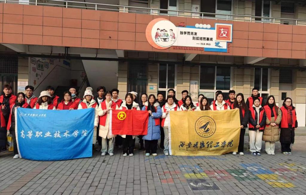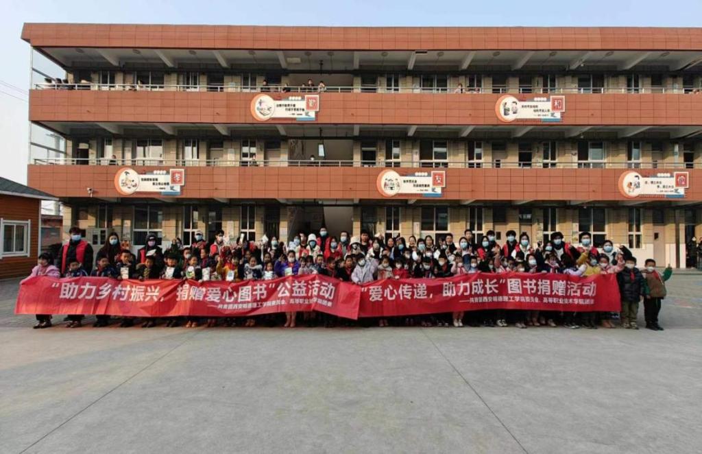 12月27日下午,校团委副书记刘雄,高等职业技术学院党总支副书记王飞、团委书记郭庆、团委副书记窦旸、辅导员代表刘洁、学校宣传大使王东兴、青年志愿者等30余人一起前往西安市长安区滦镇西留堡村小学捐赠爱心书籍。
