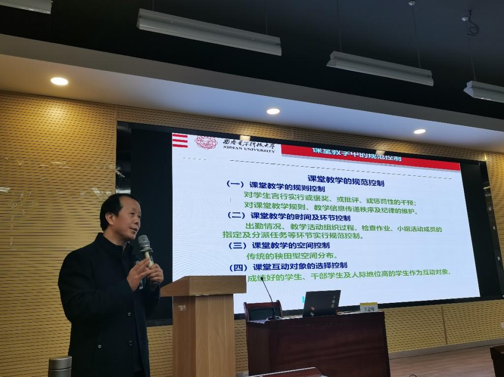 培训伊始,舒忠介绍了本次讲座专家西安电子科技大学经济与管理学院王益锋教授。紧接着,王益锋教授为教师们做了题为“重视课堂教学改革,提高课堂教学质量”的专题讲座。王益锋教授结合自身多年来的教学经验,以《市场营销学》为例,讲述了自己备课经验以及课堂教学的思路和方法。着重讲解了从八个方面开展课堂教学改革的方法,并向教师们分享了自己课堂教学的体会和感悟。