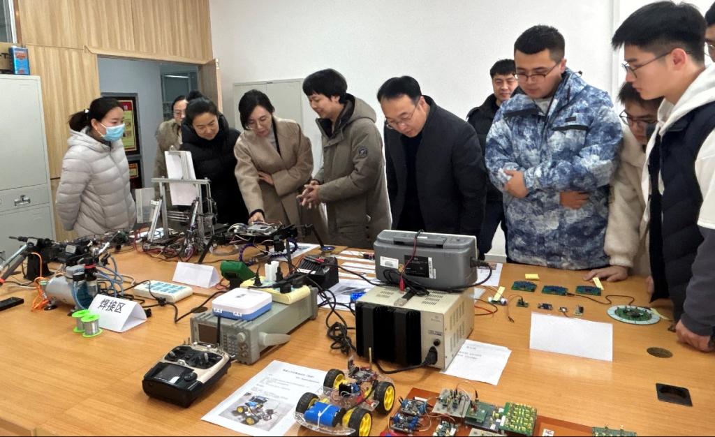 在三个月的学习和实践过程中,学生们亲手设计、制作了一系列电子产品,并于2024年1月4日在科创实验室举办了成果展,信息工程学院执行院长翟书颖、党委书记肖千春、北斗应用技术学院副院长张健、教务处李思璋及学院教师莅临指导,学生们详细介绍并展示了自己的作品。