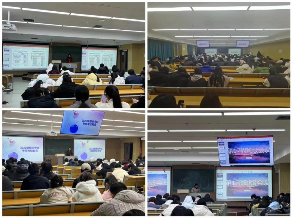 辅导员首先强调诚信考试的重要性,再次告知学生的具体考试时间,提醒学生带好学生证、一卡通、身份证等相关证件,带好考试所需的学习用具,牢记考试时间以及考试纪律,认真备考,诚信考试。之后辅导员老师根据学校假期安排给学生继续召开“寒假安全教育”主题班会。老师们通过讲解寒假回家相关注意事项,运用生动的案例提醒学生增强安全意识,同时告知学生按照要求在明德理工学院APP上填写放假离校信息,便于老师们跟踪学生们离校返家情况。此外,各个辅导员老师根据自身要求,以群接龙、小程序登记、问卷调查、表格填写等方式掌握学生寒假离校信息,确保所有学生安全到家。