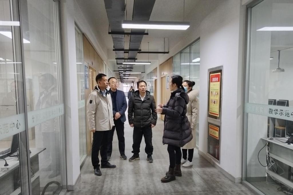 临近期末,为确保实验室工作安全运行,对标学校本科教学工作合格评估观测点基本要求,坚持实验室管理一切工作都以安全稳定为前提,强化“红线”意识和“底线”思维,网格化落实安全工作责任,切实盯紧安全薄弱环节。2024年1月12日上午,信息工程学院执行院长翟书颖、党委书记肖千春、副院长张伟岗、北斗产业学院副院长张健,在实验教学中心副主任王维斌、刘仁贵老师的陪同下,对全院20余间实验室进行了安全工作专项检查。