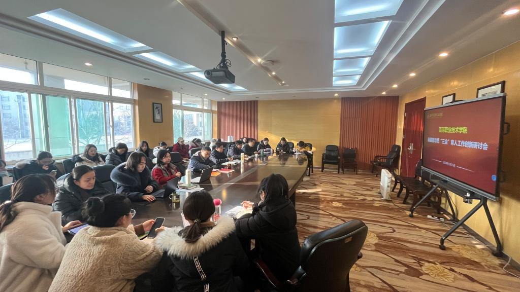 为进一步落实高校立德树人根本任务,提高辅导员育人工作成效,创新工作模式和方法,高质量打造具有高职特色的“学在明德”学风建设品牌。近日,高等职业技术学院在明理楼216会议室召开首届辅导员“三全育人”工作创新研讨会。特邀嘉宾党委学工部李传斌老师,高等职业技术学院领导班子成员全体辅导员参加交流研讨,会议由王飞主持。