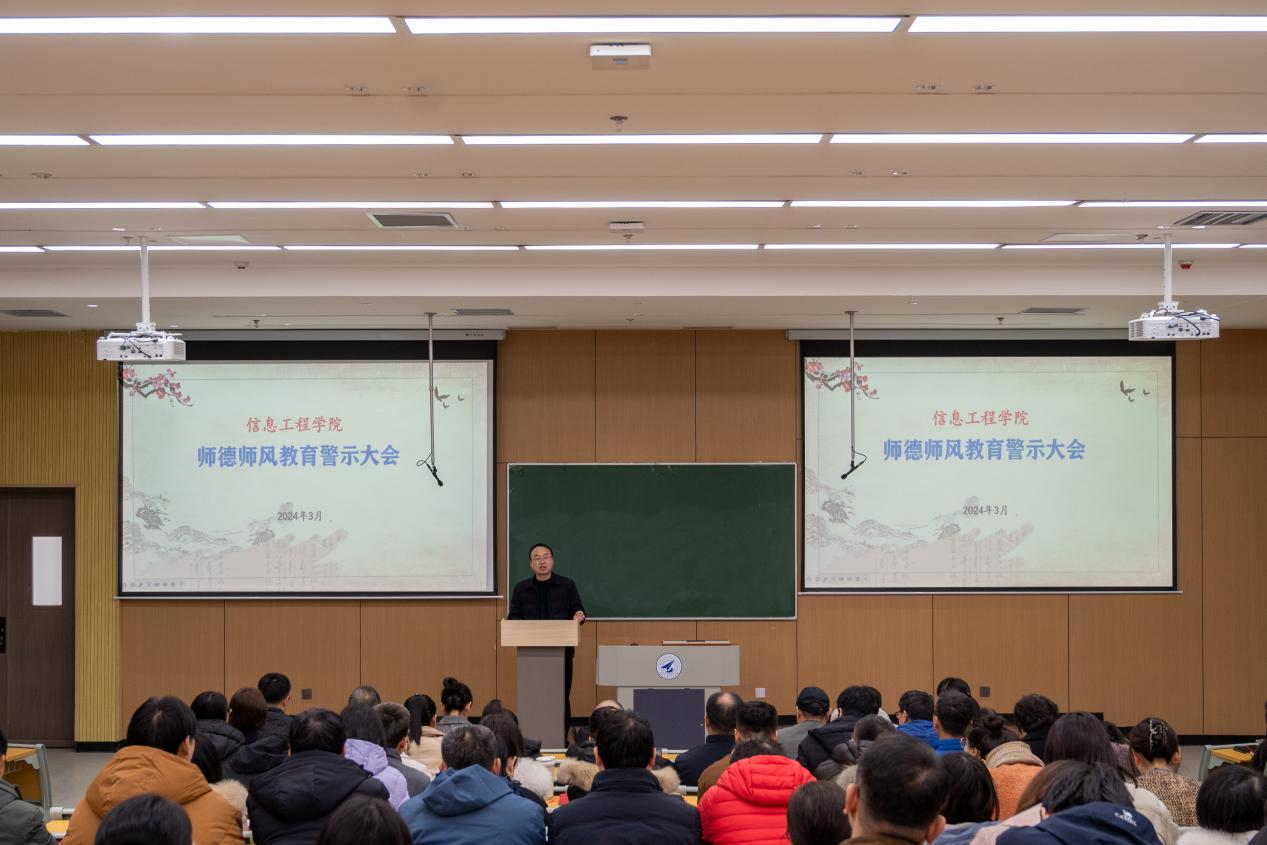 为进一步强化学院师德师风建设,严格落实师德师风第一标准。3月6日,信息工程学院在7号教学楼102召开2024年师德师风教育警示大会。会议由学院党委书记肖千春主持,学院班子成员出席,全院教职工参加。
