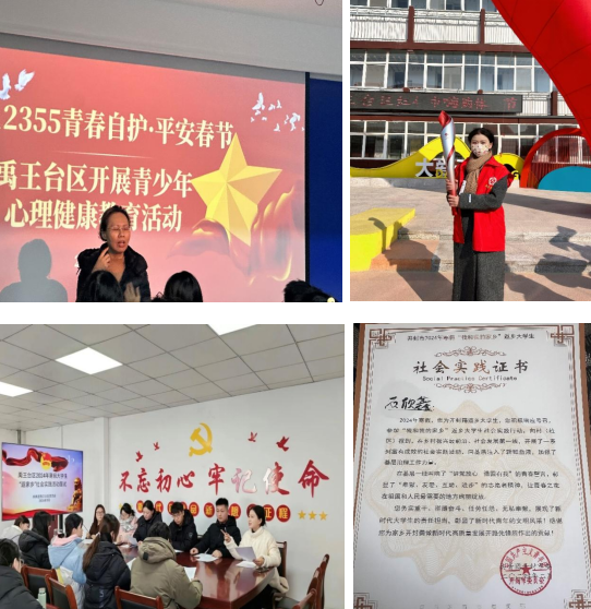 本次“返家乡”社会实践活动中,高等职业技术学院学生王东兴、张妍潞、赵晓楠等同学分别前往宁夏银川市兴庆区小孔明学校、山西省晋中市太谷区、山西大同煤矿万人坑遗址纪念馆及东南历史文化街区等各个实践场所积极参与社区服务、宣传学校等志愿服务活动,以高度热情和责任感投入实践中。学生们积极主动融入各个团队,展示明德学子服务家乡,建设家乡的青春风采。学生们表示,在实践活动能够学到许多课堂上无法学到的知识,更能在其中得到锻炼。