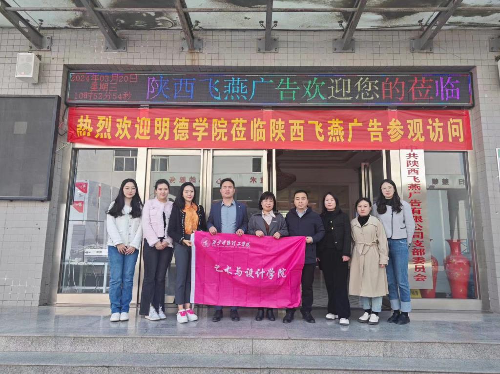 为落实访企拓岗促就业专项行动要求,深入对接我院相关企业用人需求,加强校企合作横向联系,进一步促进2024届毕业生更加充分高质量就业。3月20日上午艺术与设计学院党委书记兼行政副院长雷宇,高等职业技术学院党总支书记、副院长王庭良,广告艺术设计专业负责人舒粉利,辅导员张睿华、刘一涵、卫莹涛及王梦松等一行前往陕西飞燕广告有限公司开展了访企拓岗促就业专项行动,陕西飞燕广告有限公司总经理徐飞陪同参观并进行交流座谈。