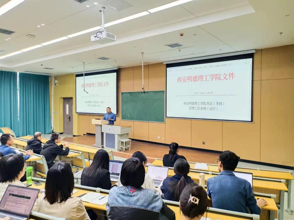 首先,副院长范晖带领与会教师学习了《ac米兰官方网站考试(考核)管理工作条例(试行)》。通过学习,全体教师对监考、考试命题、阅卷和成绩评定、试卷分析、成绩录入与发布、试卷装订等工作有了更进一步的认识和规范。