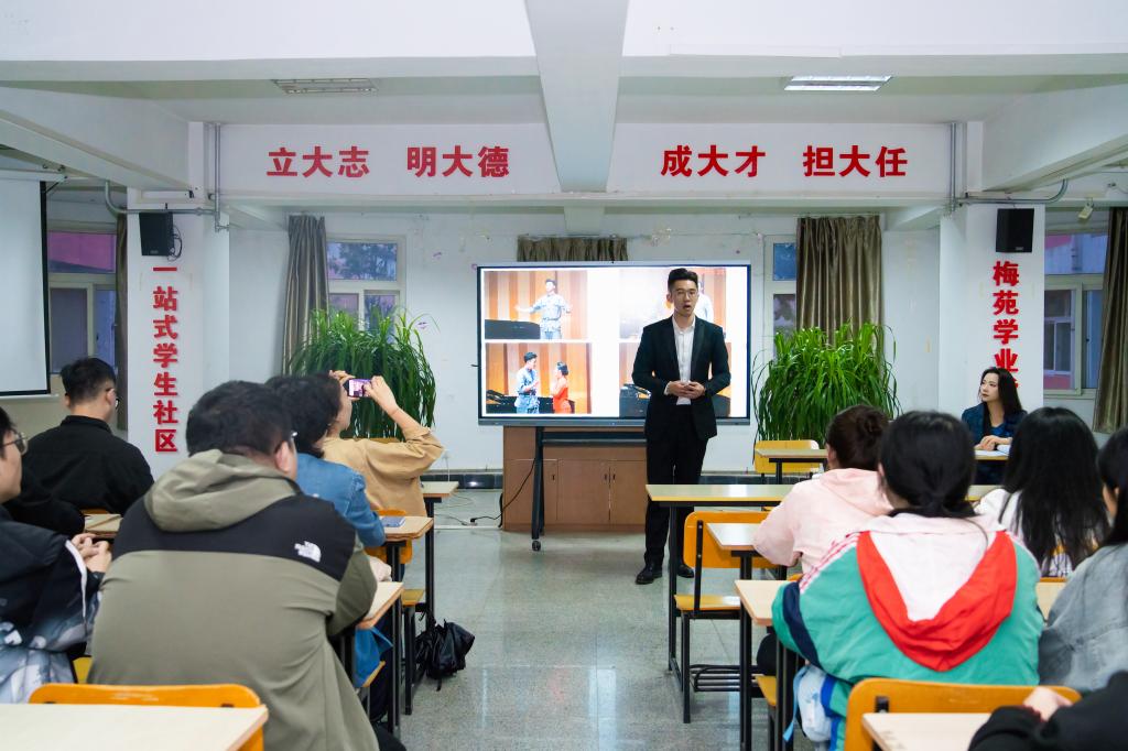 活动伊始,孟欣作为主讲嘉宾,为师生们带来了深入浅出的歌剧知识普及。他首先从歌剧的起源讲起,逐一介绍了歌剧的基本元素、艺术特点和历史发展,让师生们对歌剧有了更加全面的了解。