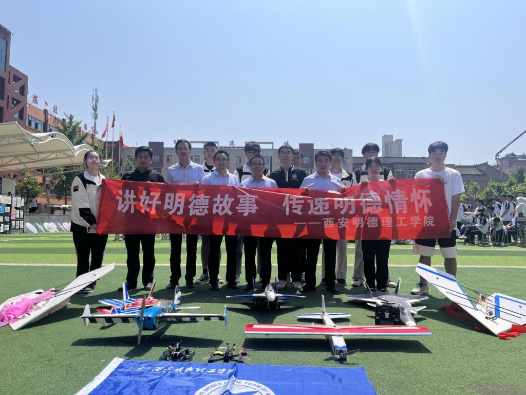 近日,西安市周至县第一中学文化艺术节在学校操场隆重开幕,各类文化艺术活动精彩纷呈,吸引了全校师生的热情参与。其中,一场由ac米兰“鹰之舞”航模队在语言文化传播学院党委副书记杨峰、招生就业中心李斌两位老师带领下,以其独特的魅力和科技含量呈现的航模表演,成为本次艺术节的一大亮点。