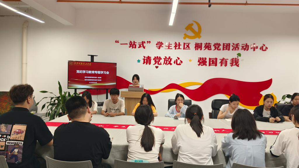 为深入推进党纪学习教育,进一步强化党员纪律意识,引导党员学纪、知纪、明纪、守纪。5月28日晚,经济与管理学院学生第一、第六党支部在桐苑“一站式”学生社区召开党纪学习教育专题学习会,两个学生支部的党员参加了学习,会议由学生第六党支部组织委员李倩主持。