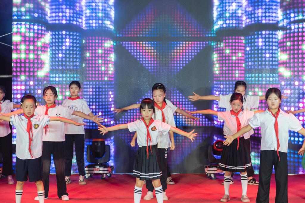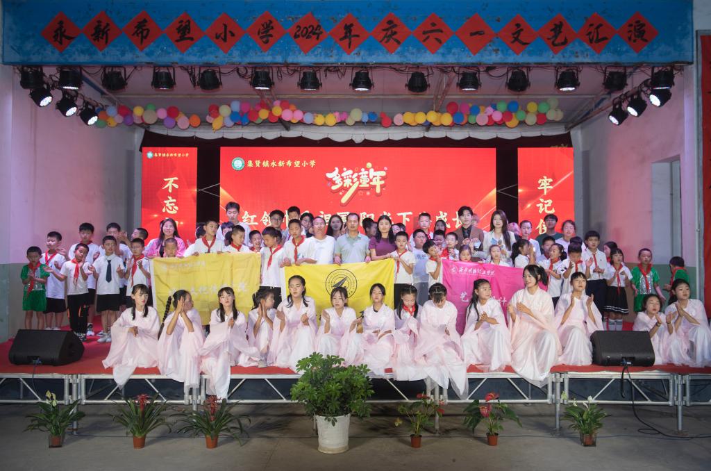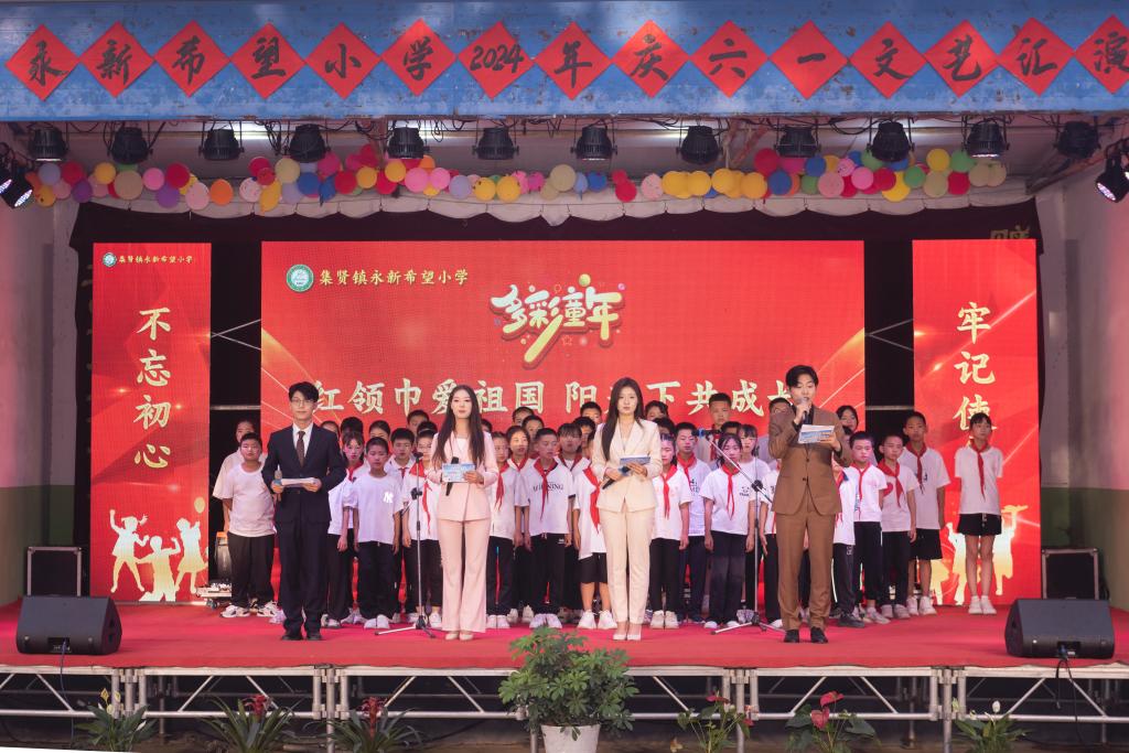 永新希望小学的同学们自信上台,《少年中国梦》《青春舞曲》合唱,《经典耀中华》《中国话》朗诵以及《小英雄雨来》课本剧……舞台上他们天真绚烂的笑容、灵动的舞姿、整齐嘹亮的诵读,都展现出新时代中国儿童的蓬勃朝气和活力。