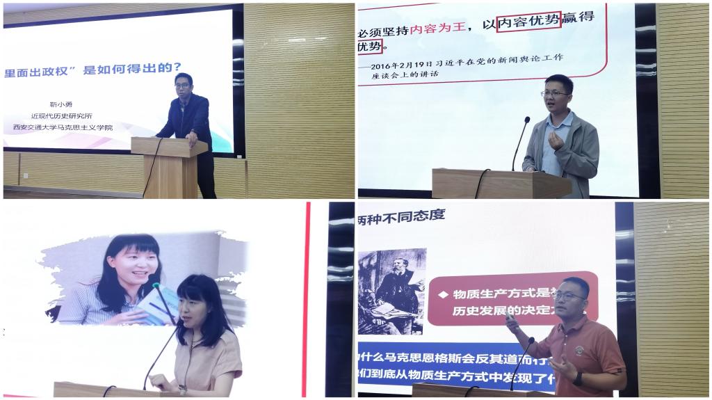 随后,吴鹏、靳小勇、邱雨、王书吟等四位专家结合自己的比赛获奖经验先后以“为什么物质生产方式是解开历史之谜的钥匙?”“‘政权是由枪杆子中取得的’是如何得出的?”“壮大互联网主流舆论”“解放战争为什么能迅速取得胜利”等主题进行了精彩的教学示范及经验分享。专家们深挖思政育人理念,以精美的课件、巧妙的设计围绕各展示主题分别进行了精彩的讲授,向ac米兰教师展示了他们深厚的理论功底,创新的教学设计,专家们以其独特的视角和良好的教学素质及丰富的比赛经验赢得大家阵阵掌声。